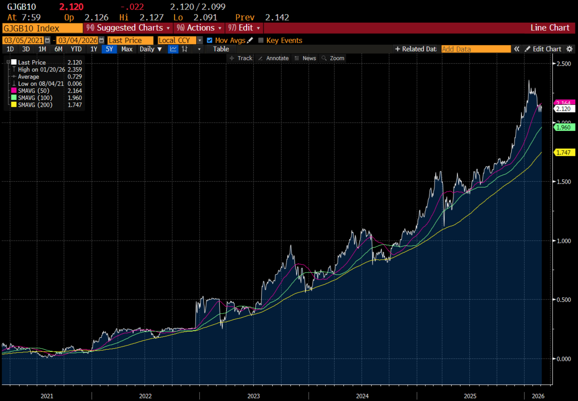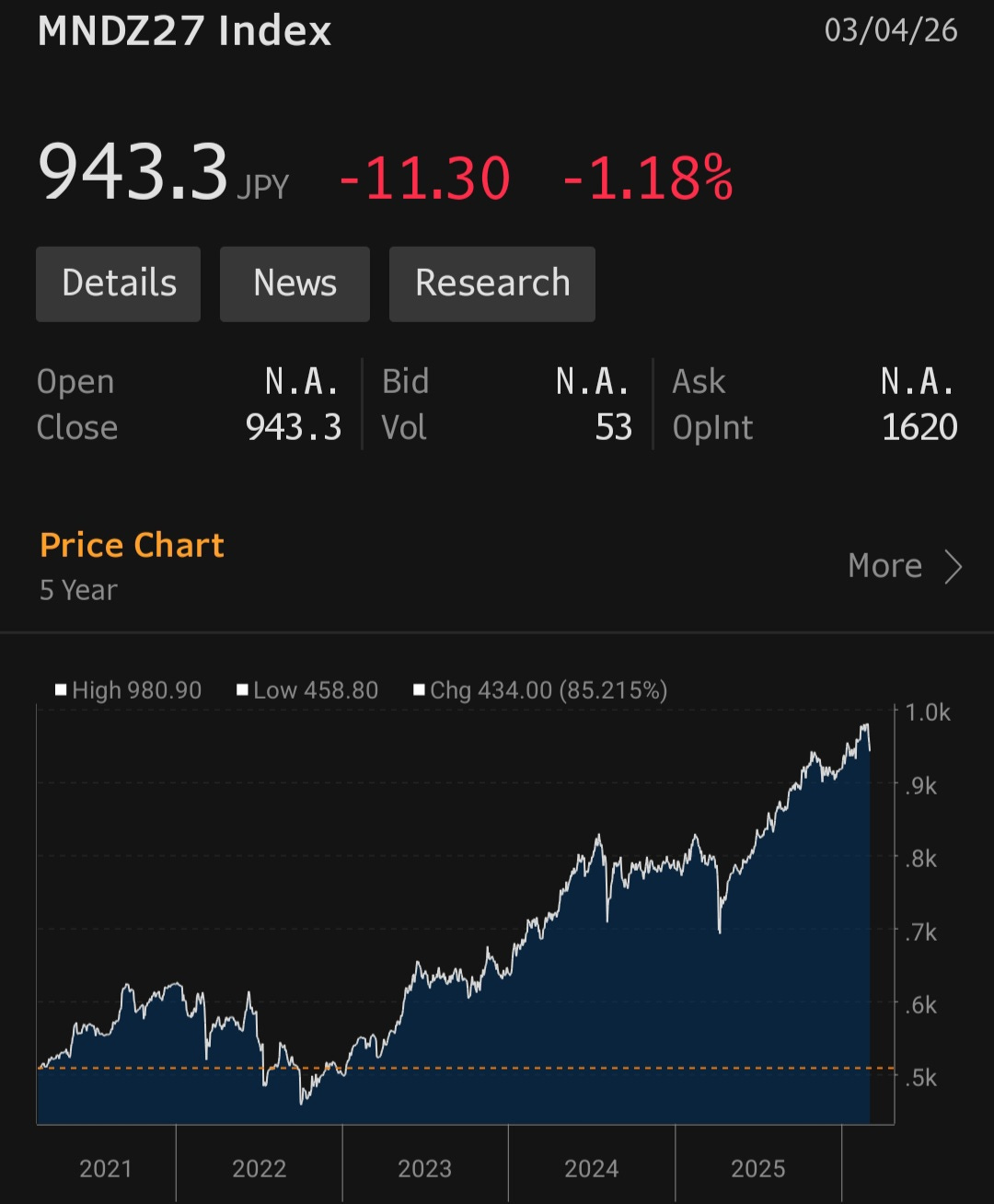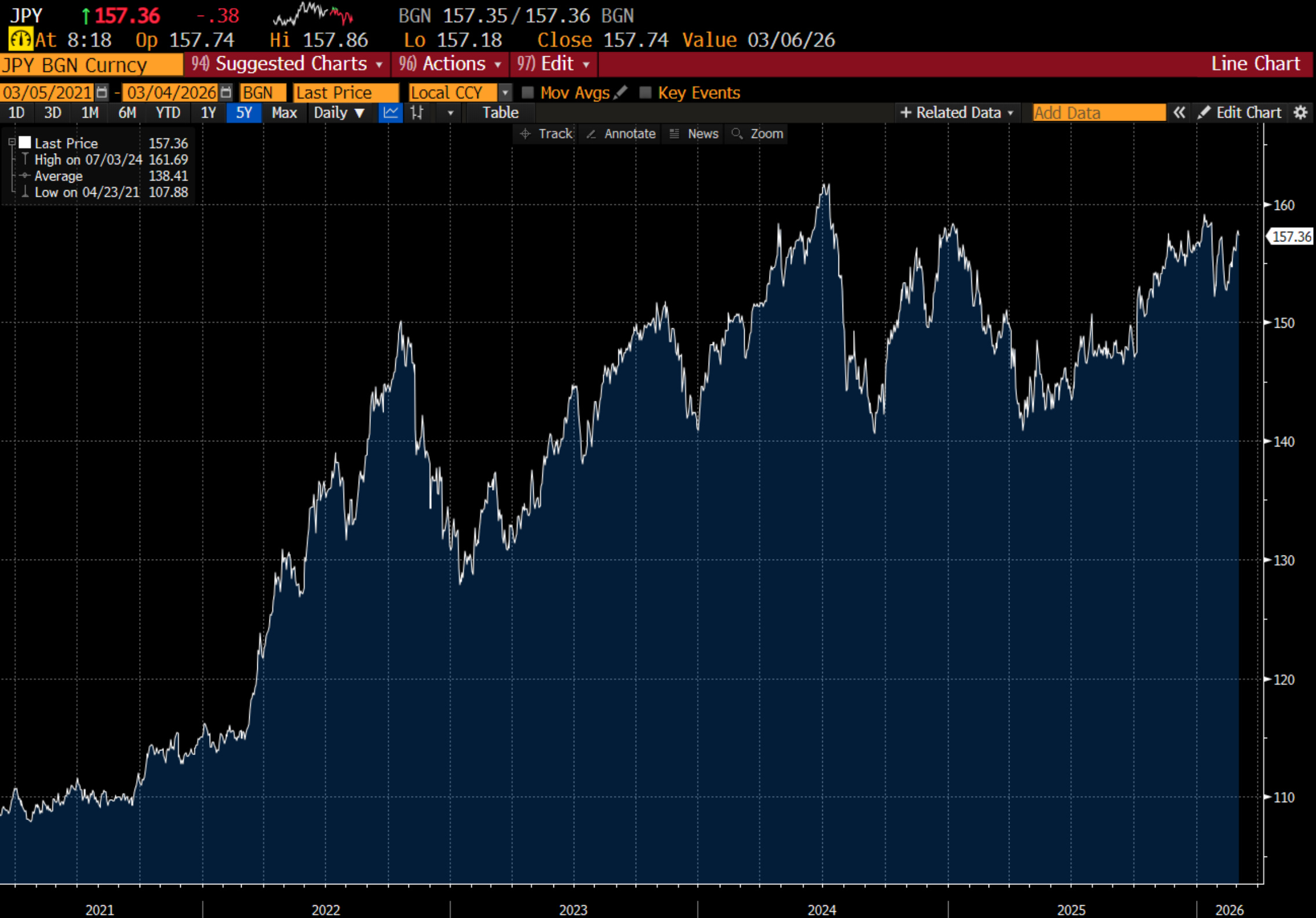 In Japan, at least for me, the driver has been a weak yen and rising yields. Yen is still weak.