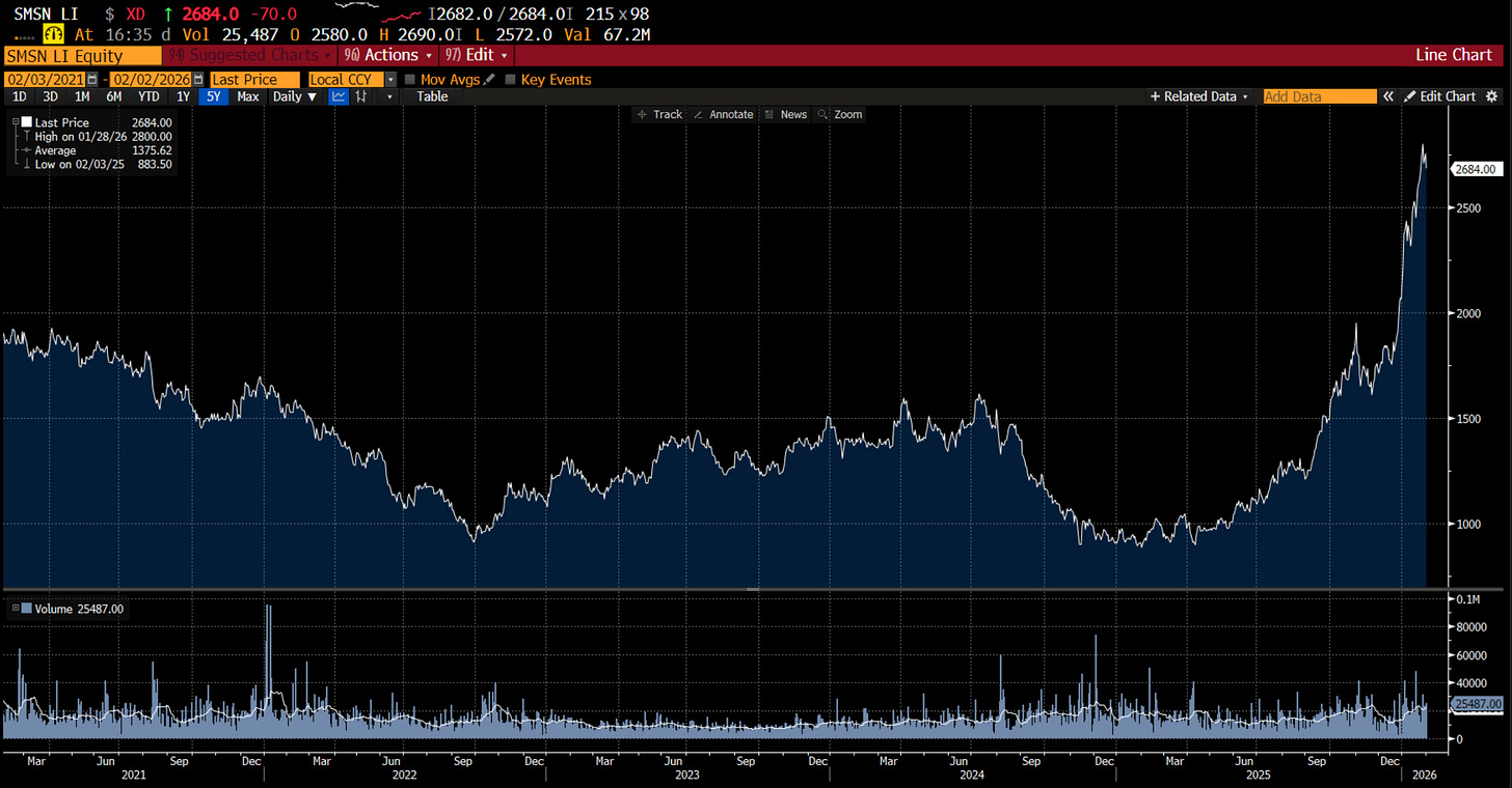 Both these companies make memory chips, and both have surged over the last few months. Samsung in particular has been pulled out of a particularly long funk.