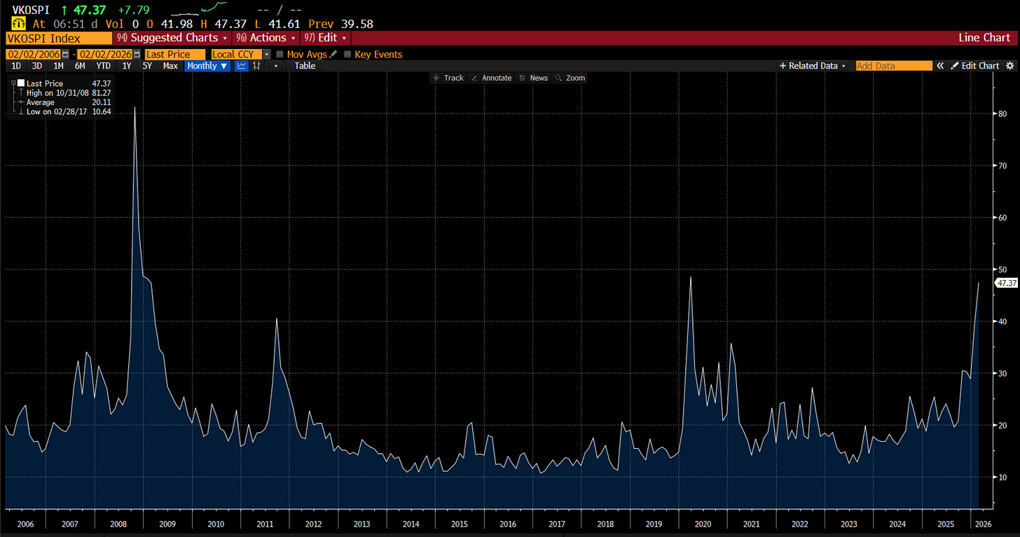 Korean VIX is not your father’s VIX. Typically, VIX spikes when markets are falling - as people then rush to buy insurance. This was the case in 2008 , 2011 and 2020. If I was told KOSPI VIX was 47, I assume the market had fallen apart.