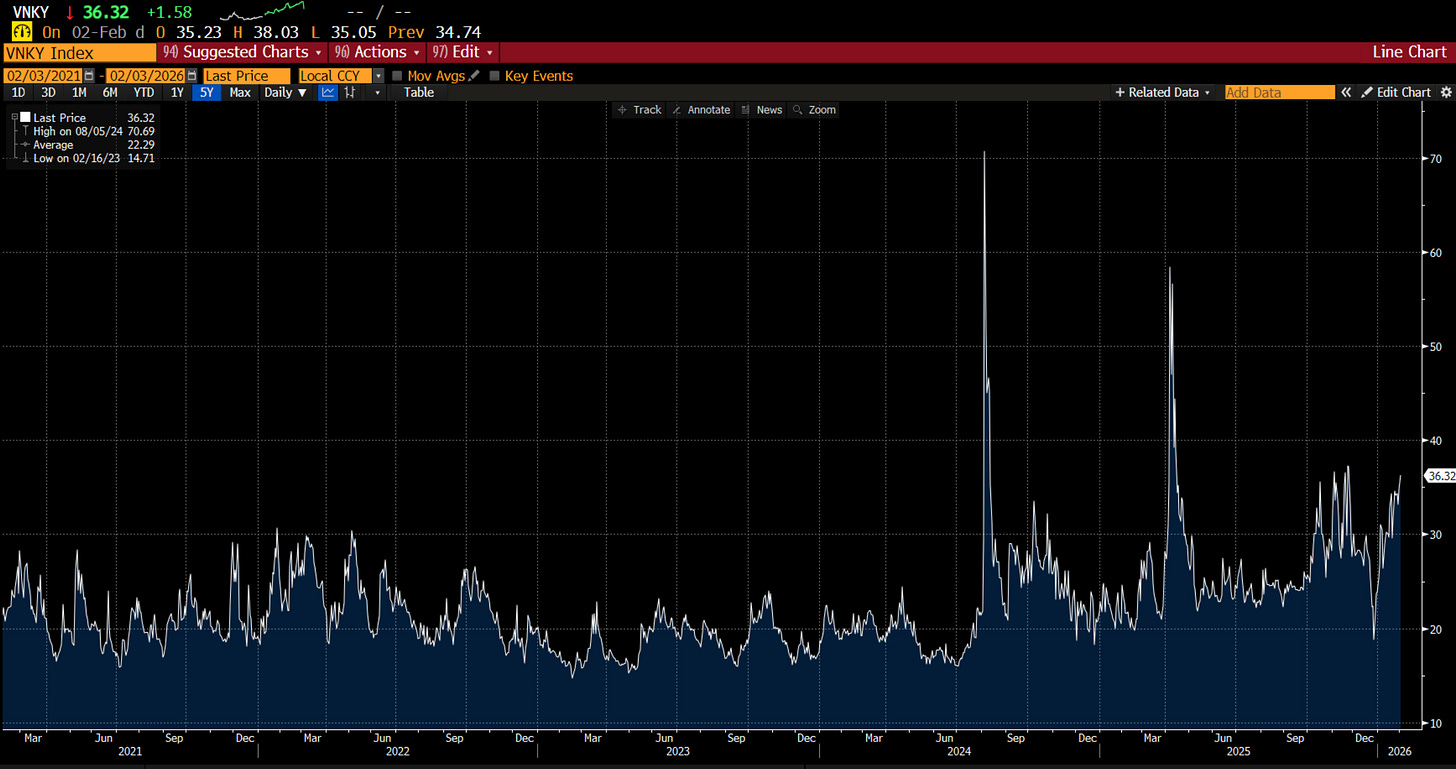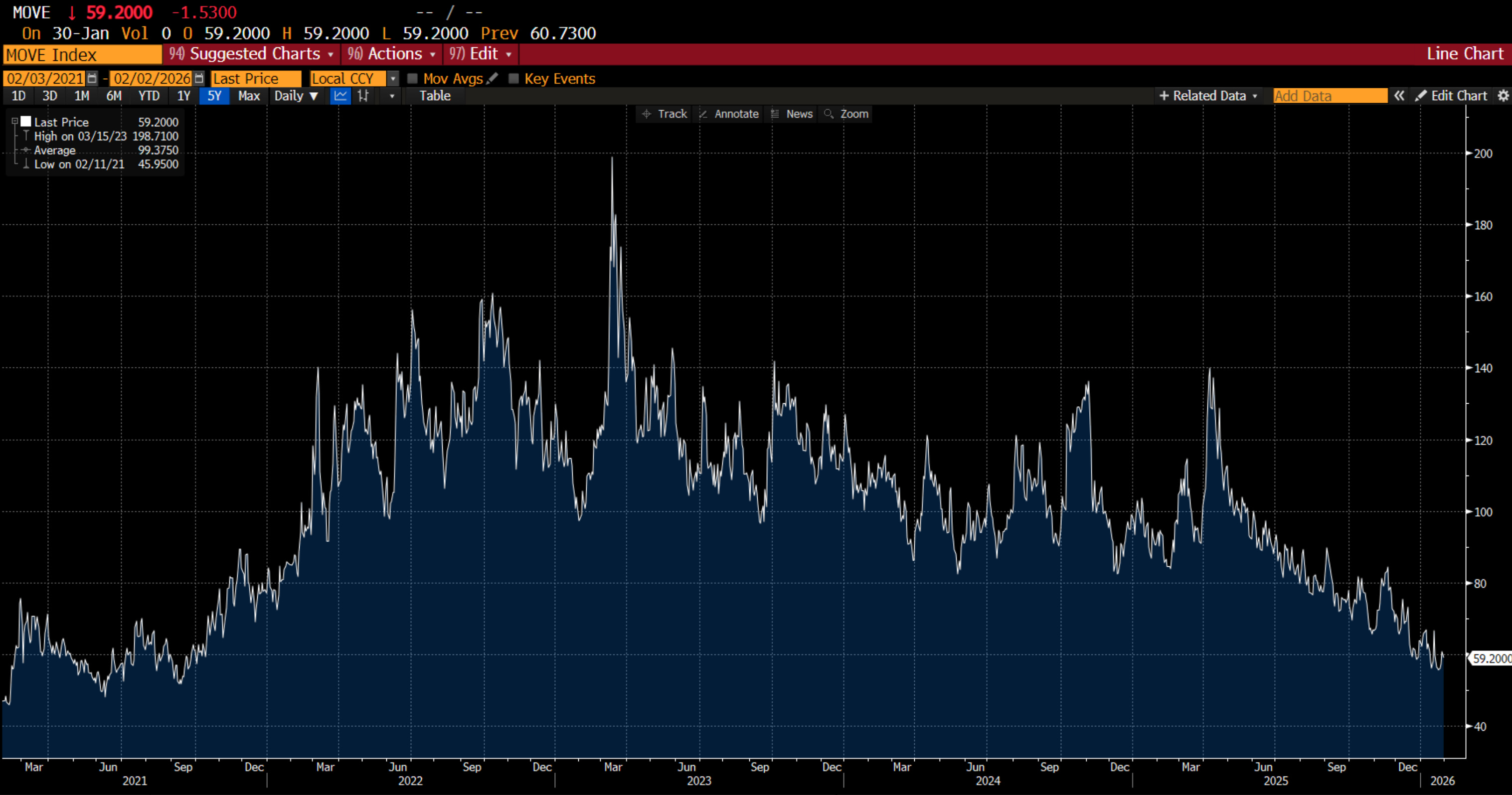 What to make of all this? Well for vol targeting funds, they must be getting very weird signals. They normally sell when volatility rises, and buy as it goes lower, but in Korea and Japan, that strategy would now be badly lagging the market. I also wonder what it does to VIX if there was a sell off now. Volatility is already expensive - does it get more so? My guess is that CTA and trend following funds are positioned in very weird ways - which means the chance that the market does weird things is elevated. I also see the MOVE Index at lows, even as the JGB market continues to be weak.