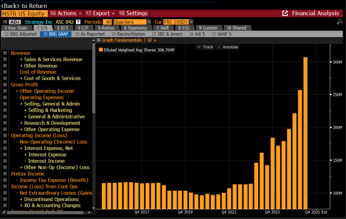 The other negative for Bitcoin has been the success of the Ishares Bitcoin ETF. Shares outstanding have surged. It would have similar holding of Bitcoin to Strategy.