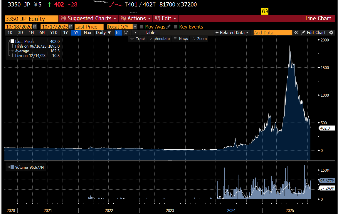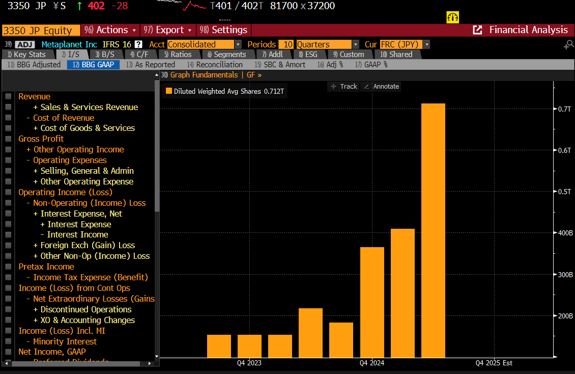 There are a number of Bitcoin treasury companies - one of the most interesting is Japanese listed Metaplanet Inc. It apparently holds 30,000 Bitcoin.